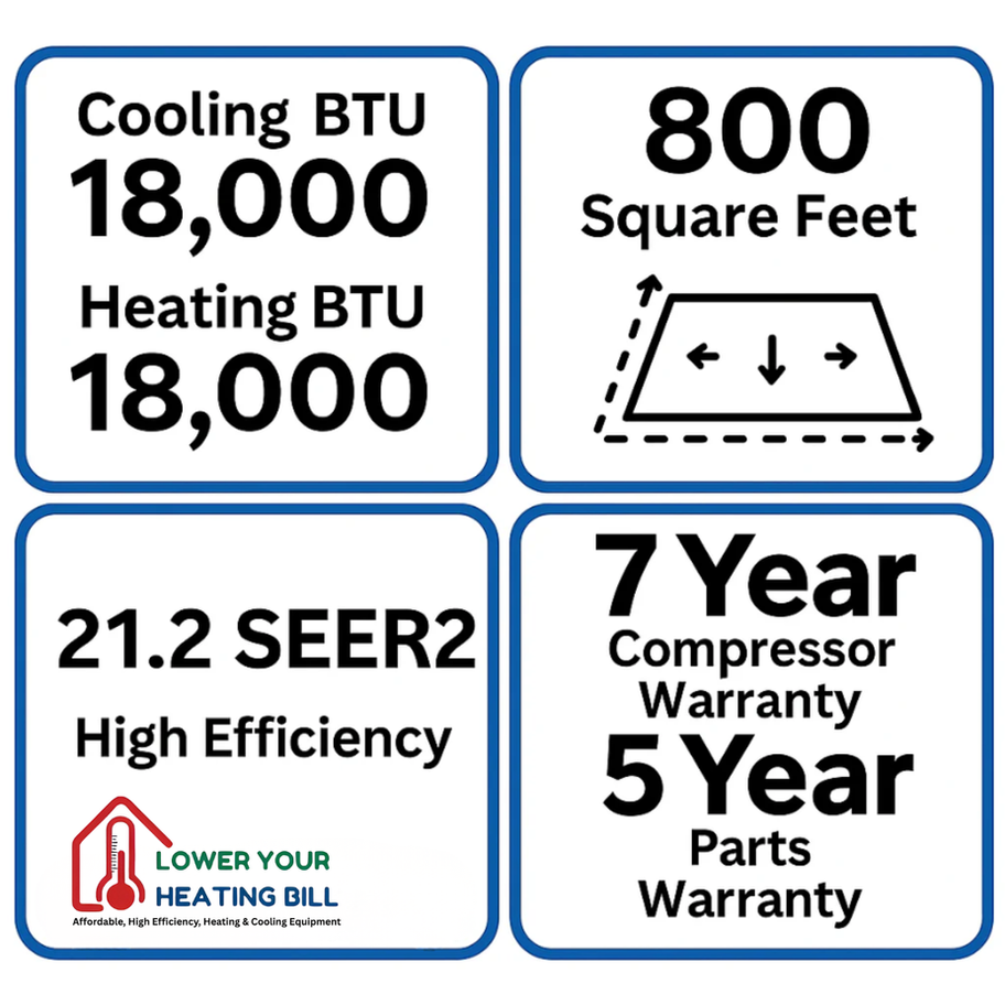 | BTU Rating | 18,000 BTU Heating & Cooling |