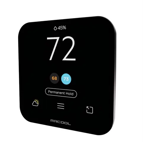 The MRCOOL® Smart Thermostat is designed to fit seamlessly into any home, delivering the perfect balance of comfort, convenience, and energy efficiency. Upgrade your heating and cooling system into a smarter, more responsive solution that gives you complete control right from your phone. Getting started is simple with the MRCOOL® SmartHVAC app. Guided registration and an intuitive interface makes setup fast and frustration-free, while DIY-friendly installation gets your system running in no time—no professional install required. Fine-tune your home environment with personalized temperature thresholds and smart templates designed for comfort and efficiency. Create schedules that complement your lifestyle using presets like Home, Away, and Sleep, or build a fully customized routine that is personalized just for you. Monitor real-time heating and cooling usage to better understand your energy consumption and maximize savings. Smart automation reduces unnecessary runtime, helping lower utility costs while maintaining ideal indoor comfort. Enjoy the ease of voice-controlled convenience with the MRCOOL® Smart Thermostat, compatible with Amazon Alexa, Google Assistant, and Siri. Location-based geofencing automatically adjusts your home’s temperature as you come and go, delivering comfort when you need it and savings when you don’t. Track, adjust, and optimize energy usage with precision to create a smarter, more efficient home. Backed by a 3-year warranty, the MRCOOL® Smart Thermostat delivers reliable performance, advanced technology, and long-term confidence—making efficient, intelligent comfort easier than ever.